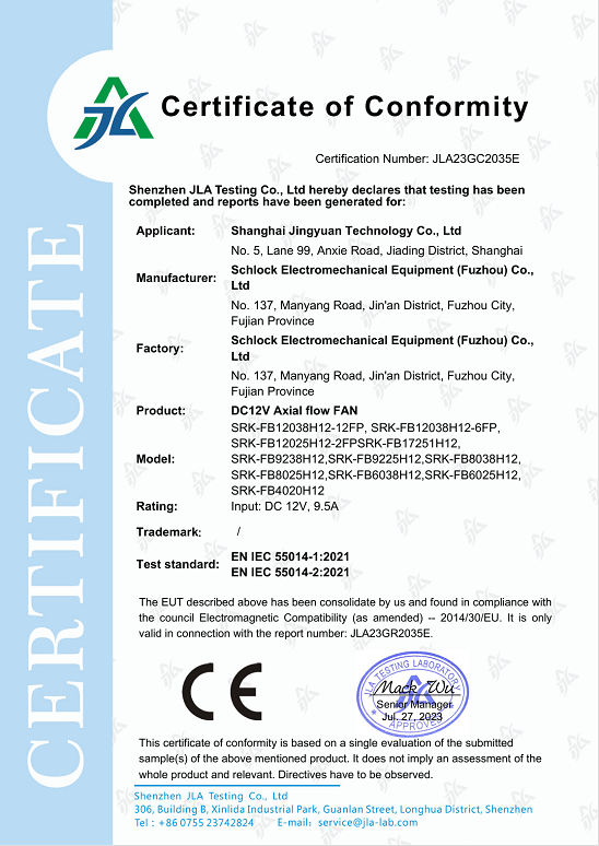 CE-EMC證書 DC12V Axial flow FAN