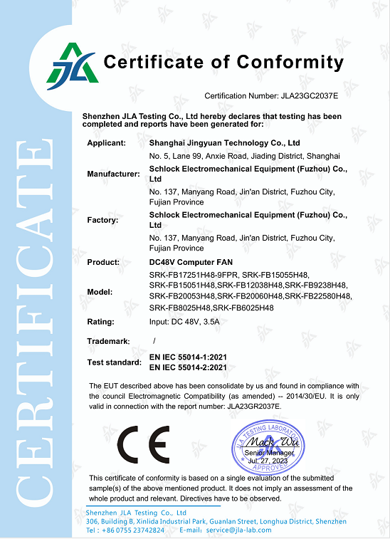 CE-EMC證書 DC24V Computer FAN